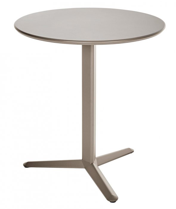 Bordet finns tillgängligt i två stilrena färger och flera olika storlekar för att passa olika utrymmen och behov. Den robusta basen är tillverkad av lackad aluminium, vilket ger stabilitet och långvarig hållbarhet, även under krävande förhållanden. Toppdelen av bordet är tillverkad av lackat stål, vilket ger en elegant och tålig yta som är enkel att rengöra och underhålla.
