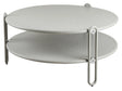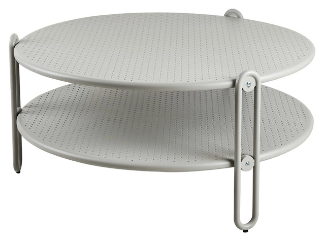 Det runda Blixt soffbordet finns i två höjder och storlekar; ett högre (42 cm) med en diameter på 65 cm och ett lägre (39 cm) med en diameter på 85 cm. De två runda metallskivorna i olika nivåerna är perforerade - en detalj som både är snygg och praktisk. Finns i mattsvart och vitt. Passar en och en eller i par - storlekarna kan de delvis överlappa varandra tack vare en liten skillnad i höjden.