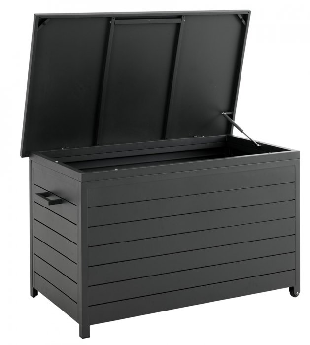 Gäster är en stilren och modern dynlåda i lackad aluminium. Den passar perfekt till att förvara dynor eller andra utomhuspryler i. Finns i två färger. Dynboxen är en helt underhållsfri och helt tät. Gäster är den perfekta dynlådan för dig som vill ha en snygg förvaringslösning med grym kvalitet. Hjulen på ena sidan gör att du enkelt kan flytta på Gäster förvaringslåda.