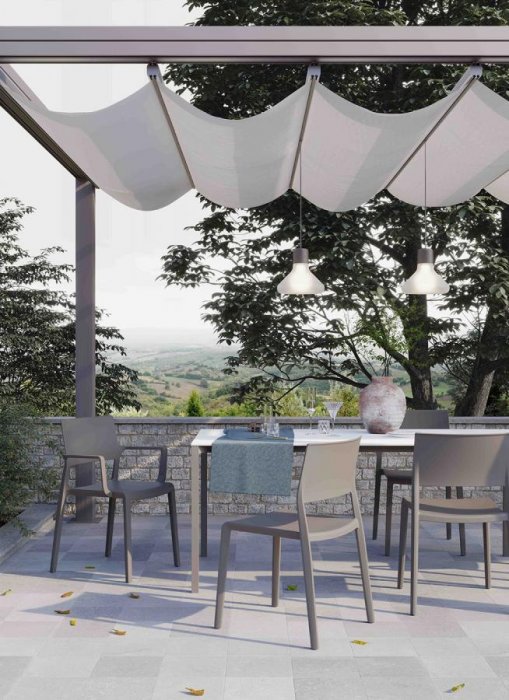 Lilibet stolen från Brafab och Gaber är en del av en mångsidig kollektion av stapelbara stolar som kombinerar essensen av tydliga linjer med funktion och sittkomfort. Tillverkade av teknopolymer, erbjuder Lilibet-stolarna en balans mellan stil och funktionalitet som passar perfekt både inomhus och utomhus.