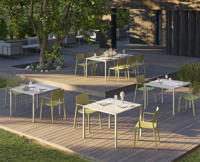 Lilibet stolen från Brafab och Gaber är en del av en mångsidig kollektion av stapelbara stolar som kombinerar essensen av tydliga linjer med funktion och sittkomfort. Tillverkade av teknopolymer, erbjuder Lilibet-stolarna en balans mellan stil och funktionalitet som passar perfekt både inomhus och utomhus.