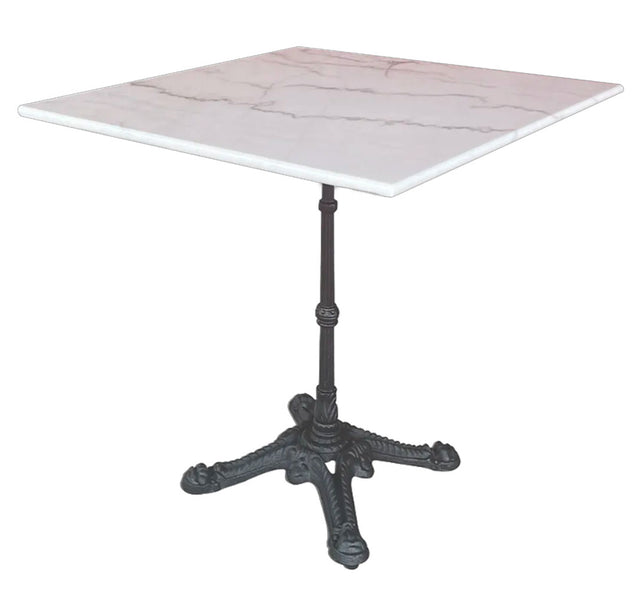 Loire är ett elegant designat marmorbord från Brafab som passar perfekt på balkongen eller som frukostbord på altanen. Toppskivan finns i vit eller svart marmor. Underrede är tillverkat i gjutjärn som belagts med svartgrå färg. Då marmor är ett levande material ser alla bord olika ut. Loire finns i flera utföranden men denna är med kvadratisk form som funkar utmärkt på cafét.