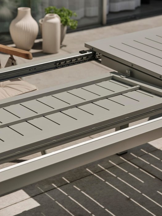 Det som verkligen sätter Lomma i en klass för sig är dess imponerande storlek. Ihopfällt mäter det 194 centimeter, och när det är utfällt sträcker det sig till hela 312 centimeter. Det ger dig inte bara generöst med plats utan också en möjlighet att skapa en imponerande utomhusmatsal som blir själva hjärtat i din trädgård eller på din uteplats.