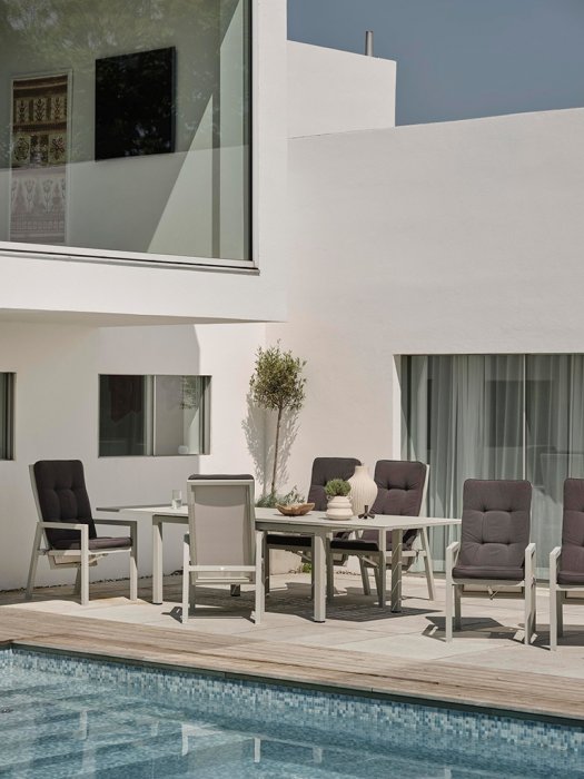 Lomma matbord är inte bara ett aluminiumbord, det är ett konstverk av elegans och funktionalitet. Med sitt distinkta ribbmönster skapar det en känsla av trygghet och stil samtidigt som det tar uttrycket för skandinavisk design till en ny nivå.