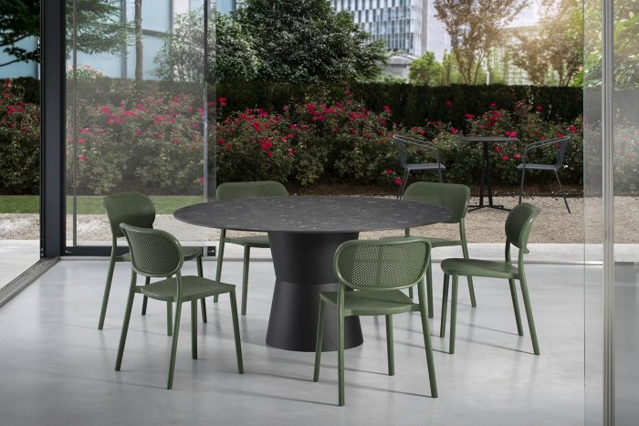 Nuta stolen framstår som en symbol för klassisk elegans och autenticitet med sina fina detaljer och tidlösa stil. Tillverkad av teknopolymer utstrålar denna sittkollektion en känsla av raffinement och passar perfekt för exklusiva installationer, både inomhus och utomhus.
