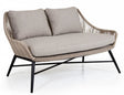 Pembroke är en härlig loungesoffa i konstrotting från Brafab. Pembroke har en modern design med sina grova rottingdesign i kombination med nätta ben och eleganta detaljer. Pembroke är tillverkad i beige konstrotting och aluminium med dynor i slistarkt sandfärgat olefintyg. Serien är lättskött och mycket elegant. Nätta ben i svartlackad metall. Pembroke är den perfekta loungefåtöljen för dig som vill ha unik design och svårtslagen sittkomfort. Missa inte soffan i samma serie.