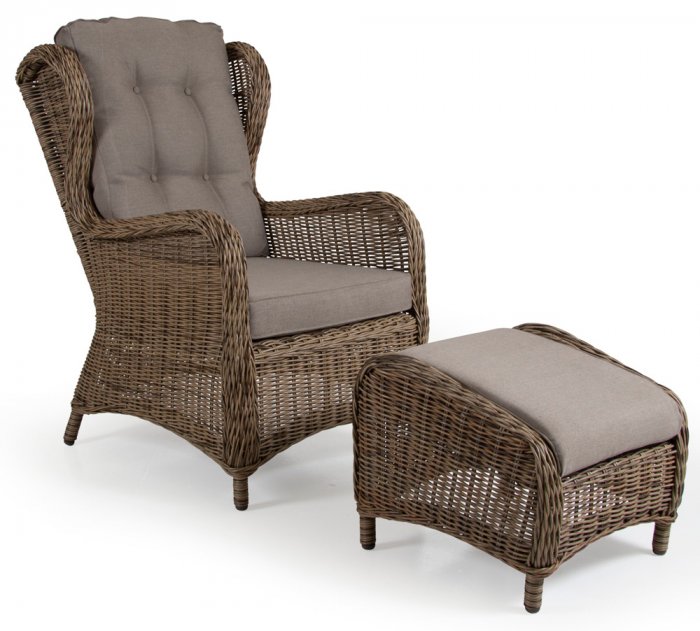 Rosita är en härlig fåtölj i konstrotting från Brafab. Rosita har en klassisk rottingdesign och erbjuder en fantastisk sittkomfort. Rosita är tillverkad i konstrotting och aluminium med dynor i slistarkt olefintyg. Serien är lättskött och mycket elegant. Välj mellan beige och grå konstrotting samt med eller utan reclinefunktion. Köp gärna till fotpallen eller sidobordet. Missa inte heller soffan i samma serie.
