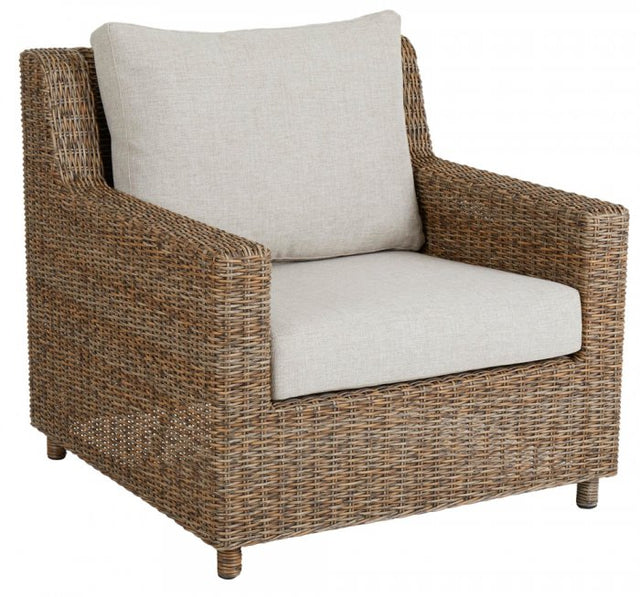 Sandkorn är en elegant fåtölj från Brafab i äkta New England stil. Den är tillverkad i tjock rund konstrotting i rustik finish med en stomme i aluminium. Sandkorn är den perfekta fåtöljen för dig som vill ha en exklusiv utomhusgrupp i naturtrogen konstrotting. Kuddarna är tillverkat i slitstark olefintyg som har en vattenavstötande yta. De sköna dynorna och höga ryggen ger en härlig sittkomfort och gör Sandkorn till en perfekt loungegrupp för varma sommardagar och kvällar.