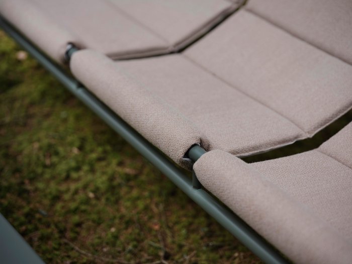 Sling-serien fångar essensen av sommaren med sina lekfulla och runda former. Soffans dynor, elegant hängande på stommen, är inte bara en visuell fröjd utan erbjuder även en bekväm plats att sitta och koppla av. Serien inkluderar även en fåtölj, soffbord och andra komplement som tillsammans skapar en enhetlig och stilsäker utomhusinredning för ditt avkopplingsutrymme.