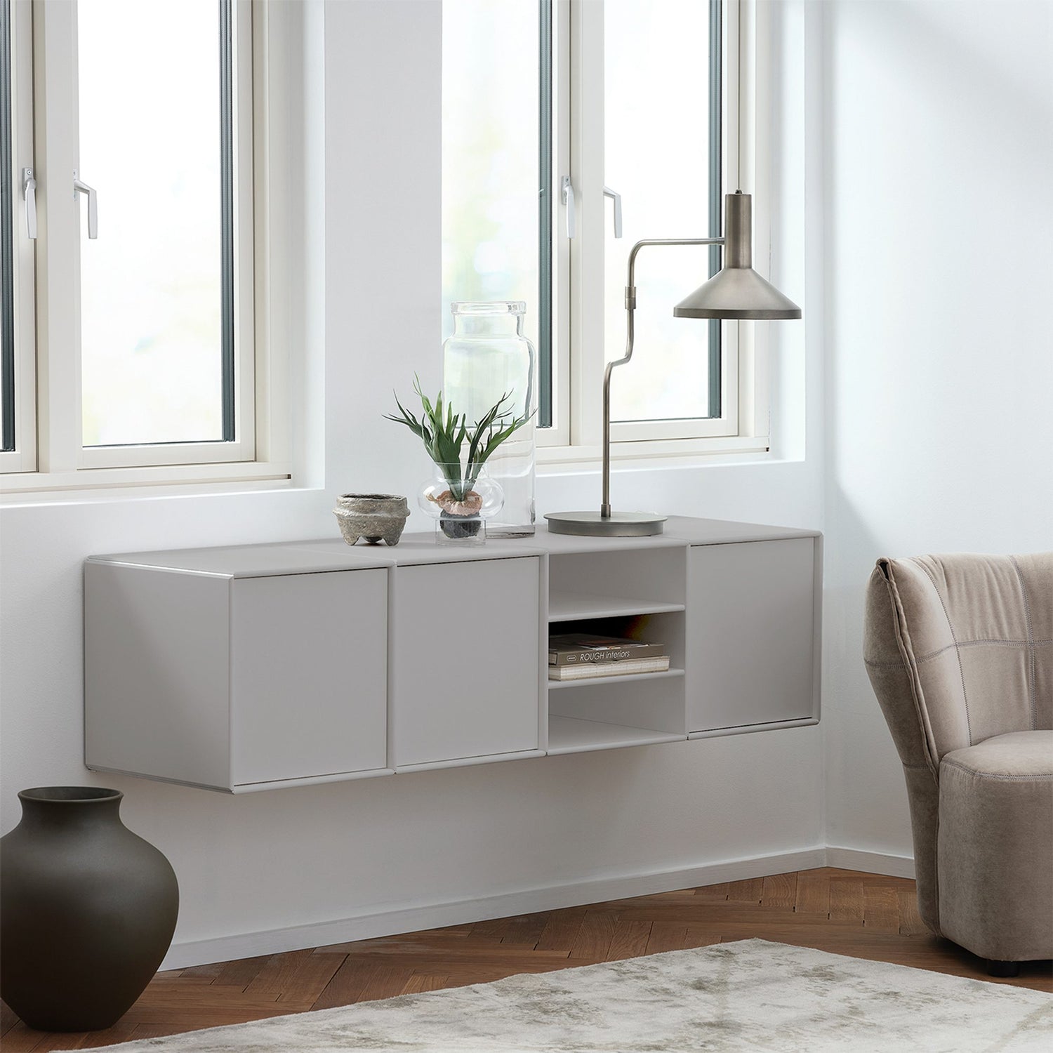 Med sin vägghängda konstruktion och generösa bredd blir Quadrant-sidobordet Madison ett elegant och funktionellt tillskott i hemmet. Den stilrena, klassiska designen ger ett lugnt och genomtänkt uttryck samtidigt som möbeln erbjuder gott om förvaringsutrymme bakom dörrar och på praktiska hyllor.