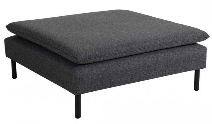 Modern, bekväm och byggbar. Callisto är sittmöbeln som ger ett extra djup till uteplatsen. Här har måtten nämligen fått bre ut sig lite extra – och det märks i verkligen i komforten. Djupa och breda på ett sätt som förlänger hemmet långt ut. Samtliga delar är snyggt grå i vattenavvisande olefintyg som även försetts med liner som gör att vatten inte tränger in i dynan. Ben i svart aluminium.
