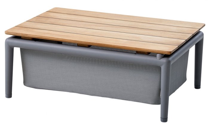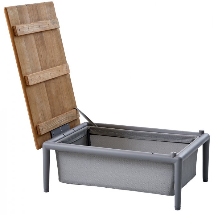 Conic box bord är ett praktiskt litet sidobord med inbygd förvaring. Under teakskivan finns ett utrymme i väderbeständig Cane-line Tex där du kan förvara, kuddar, plädar o.s.v... Conic är en serie loungemöbler med stor flexibilitet. Stommen i pulverlackad aluminium gör att möblerna är lätta att flytta runt så du hela tiden kan anpassa loungemiljön efter dina behov och önskemål.
