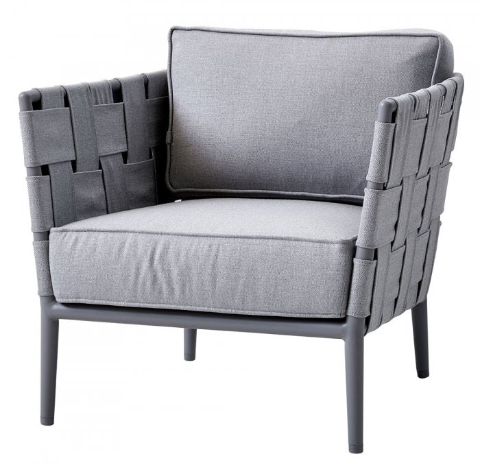 Conic-Longe är en skön fåtölj från Cane-Line som kräver minimalt med underhåll. Vattenavvisande dynor med Cane-Lines unika QuickDry system. Stommen är gjord i pulverlackad aluminium och den snygga flätningen är gjord i Cane-line Soft-touch®.