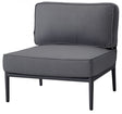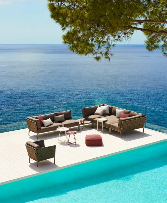 Vattenavvisande dynor med Cane-Lines unika QuickDry system. Stommen är gjord i pulverlackad aluminium och den snygga flätningen är gjord i Cane-line Soft-touch®.
