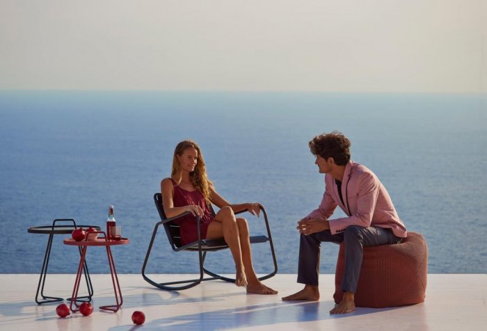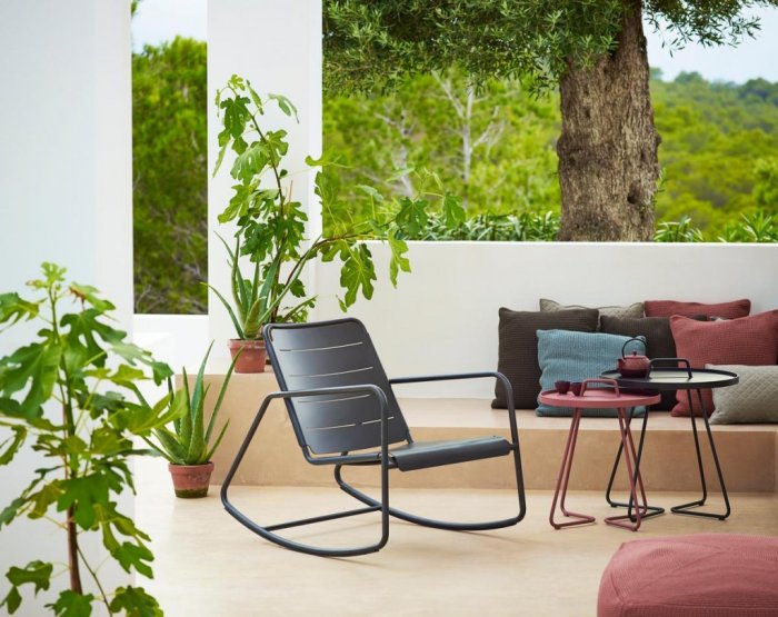 Inspirationen för Copenhagen serien är livlig Köpenhamn med alla sina unika och spännande utrymmen, både stora och små. Det omfattande sortimentet gör att du kan designa ditt eget personliga utrymme, välja mellan spännande mönster i matbord, matsalstolar, bänkar, gungstolar, hyllor och klädhängare. Copenhagen är designad av designerduket Strand+Hvass. Den enkla designen går överallt, är lätt att flytta runt och kompletterar befintliga områden. Alla produkter är allt väder" - i väderbeständigt, pulverlackerad aluminium, vilket gör dem lämpliga för både inomhus och utomhusbruk.