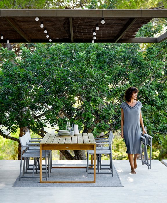 Teak är en oljerik träsort som passar perfekt för utomhusbruk. Träet får med tiden en naturlig silvergrå patina. Det kan även behålla sin naturliga lyster med hjälp av teakolja. Cane-line teak är godkänd och odlas enligt SVLK certifieringssystemet.