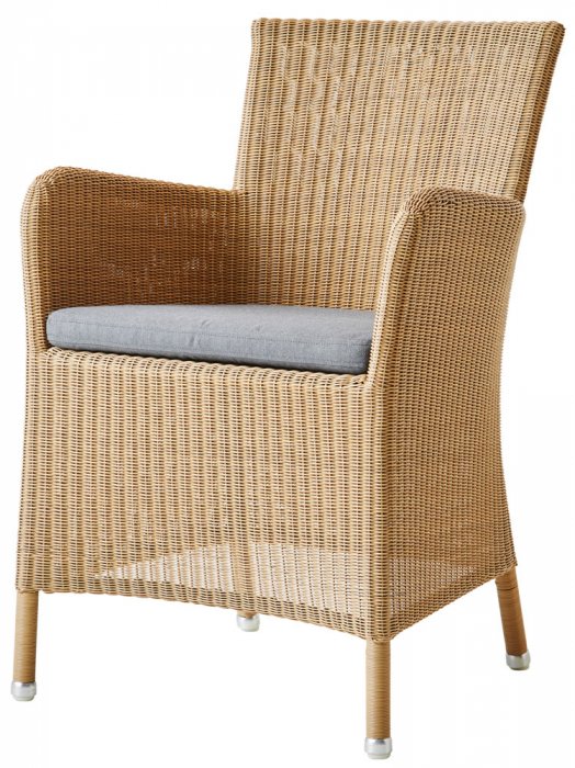 Hampsted är en klassisk korgstol från Cane-Line. Hampsted har en underbar sittkomfort framför allt med dynan som finns som tillval. Dynan är tillverkad i Sunbrella tyg som helt vattentät. Stommen är tillverkad i vävd konstrotting av absolut högsta kvalitet vilket gör stolen helt underhållsfri samt att den är godkänd för offentlig miljö. Hampsted finns i flera olika färger.