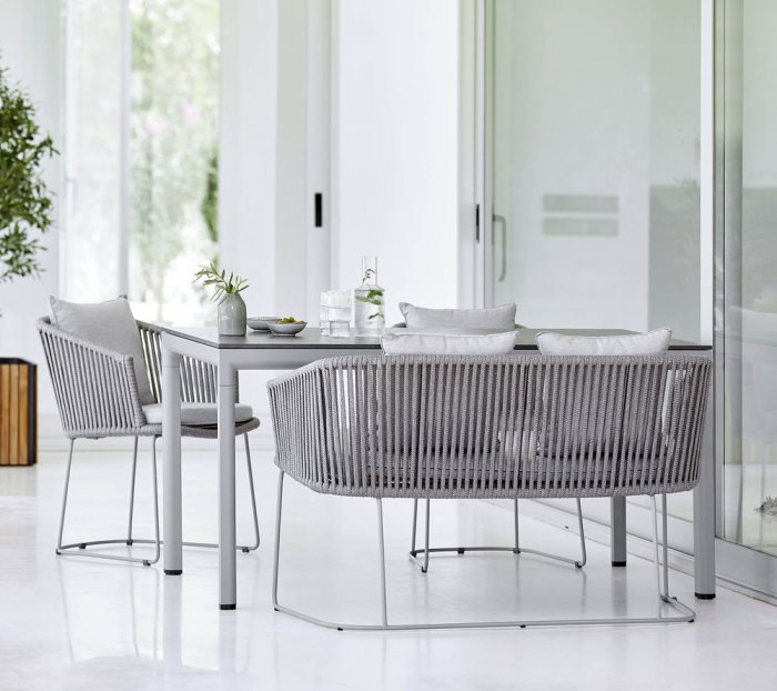 Här som stilren matbänk eller matsoffa med en underbar sittkomfort. Glöm inte att köpa till dynset.