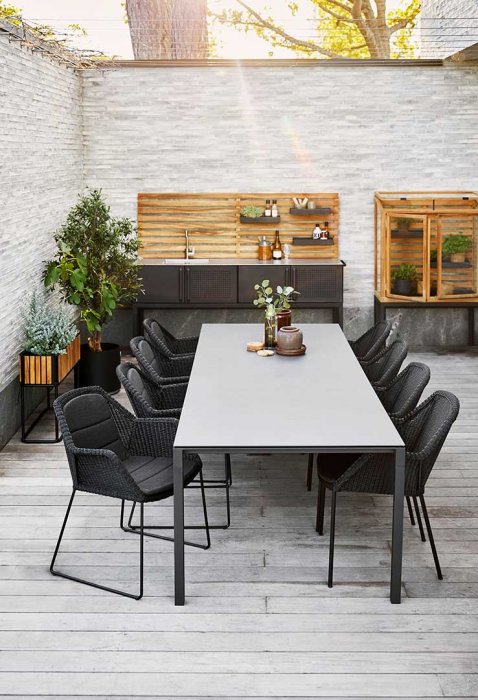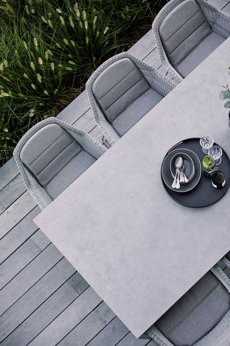 Underhållet är enkelt – du behöver bara torka av bordet med en fuktig trasa. Det gör Pure till ett idealiskt alternativ för dig som söker en elegant lösning som kräver minimalt underhåll. Välj bland olika finishar och storlekar för att få ett bord som smidigt anpassar sig till din inredning, oavsett om det är i trädgården, på altanen eller i matsalen.