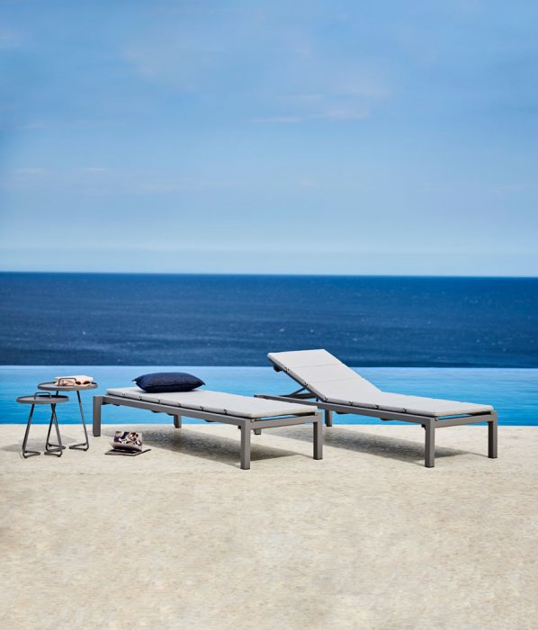 För extra komfort kan du komplettera med en 4 cm tjock dyna i vattenavvisande Sunbrella Natte, utrustad med Cane-Lines praktiska Quick-Dry-system. Dynan torkar mycket fortare efter regn, så du kan snabbt återgå till att njuta av dina solstunder. Välj bland flera färger för att anpassa Relax efter din egen stil. Observera att dynan säljs separat.