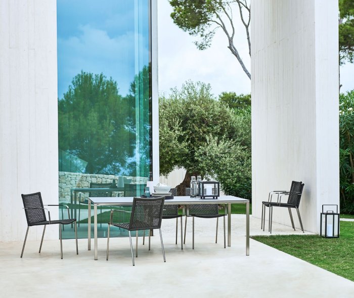 Straw är en modern och stilren karmstol från danska Cane-Line. Stommen är tillverkad i rostfritt stål med en snygg väv i Cane-Line rope. Straw är helt underhållsfri och klarar att stå ute i ur och skur. Se skötselråd för rostfritt stål. Missa inte den snygga fåtöljen i samma serie.