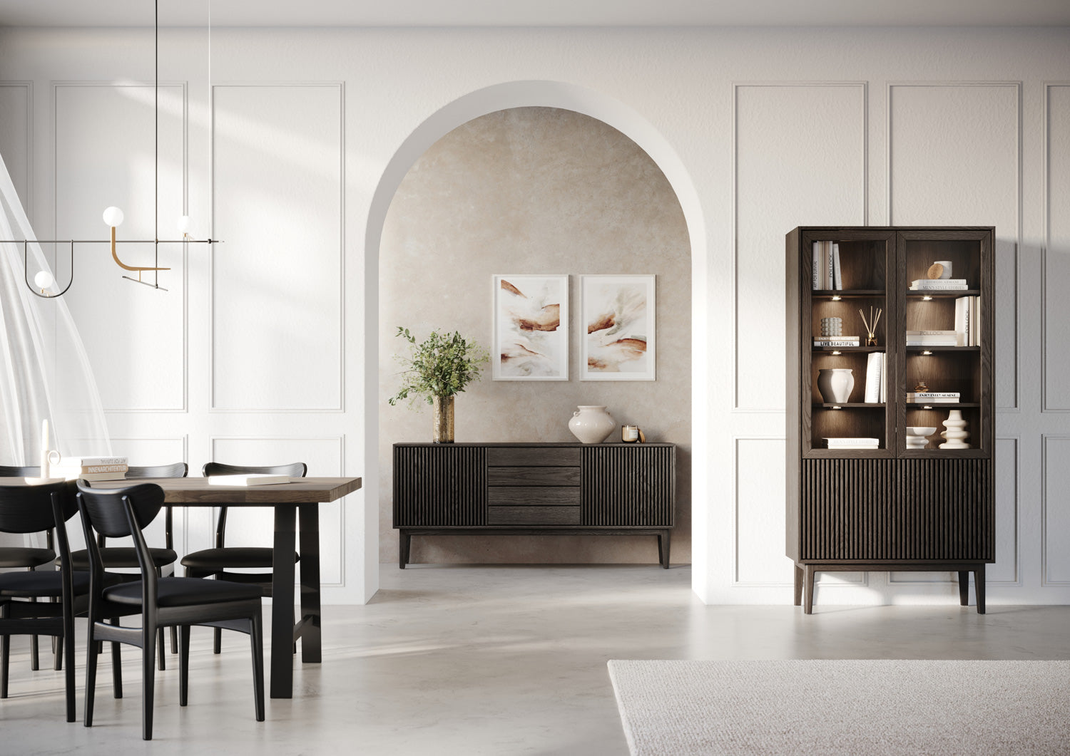 Broholm Vitrinskåp Lameller Rökfärgad Ek