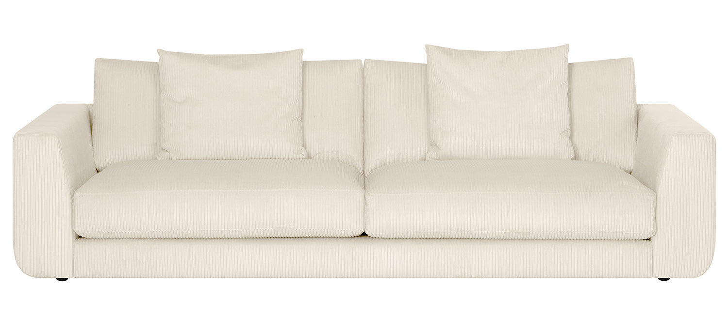 Chiara är en modern och otroligt bekväm 3 sits XL soffa som bjuder in till avkoppling med sitt generösa sittdjup och sin stilrena form. Klädseln är Lincoln Creme, ett mjukt och slitstarkt manchestertyg med tydlig ribbad struktur i en varm cremefärgad ton som gör rummet ljust och harmoniskt. De bärande delarna av stommen är i massivt trä vilket ger en stabil och hållbar konstruktion.