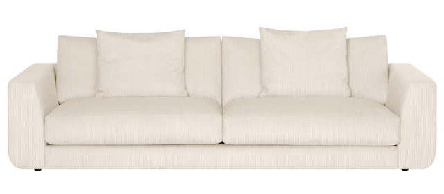 Sittplymåerna har en kärna av 35 kg kallskum för fast men följsam komfort. Kärnan omsluts av en mix av skuret skum och PES bollar som ger en mjuk, inbjudande yta, och toppen är täckt med polyesterfiber för extra komfort och jämn finish. Plymåerna är inte vändbara men den avtagbara klädseln gör det enkelt att hålla soffan fräsch. Stommen kompletteras av plywood, hårdpapp och spånskiva samt ett metallfjädersystem som bidrar till stabilitet och skön fjädring.