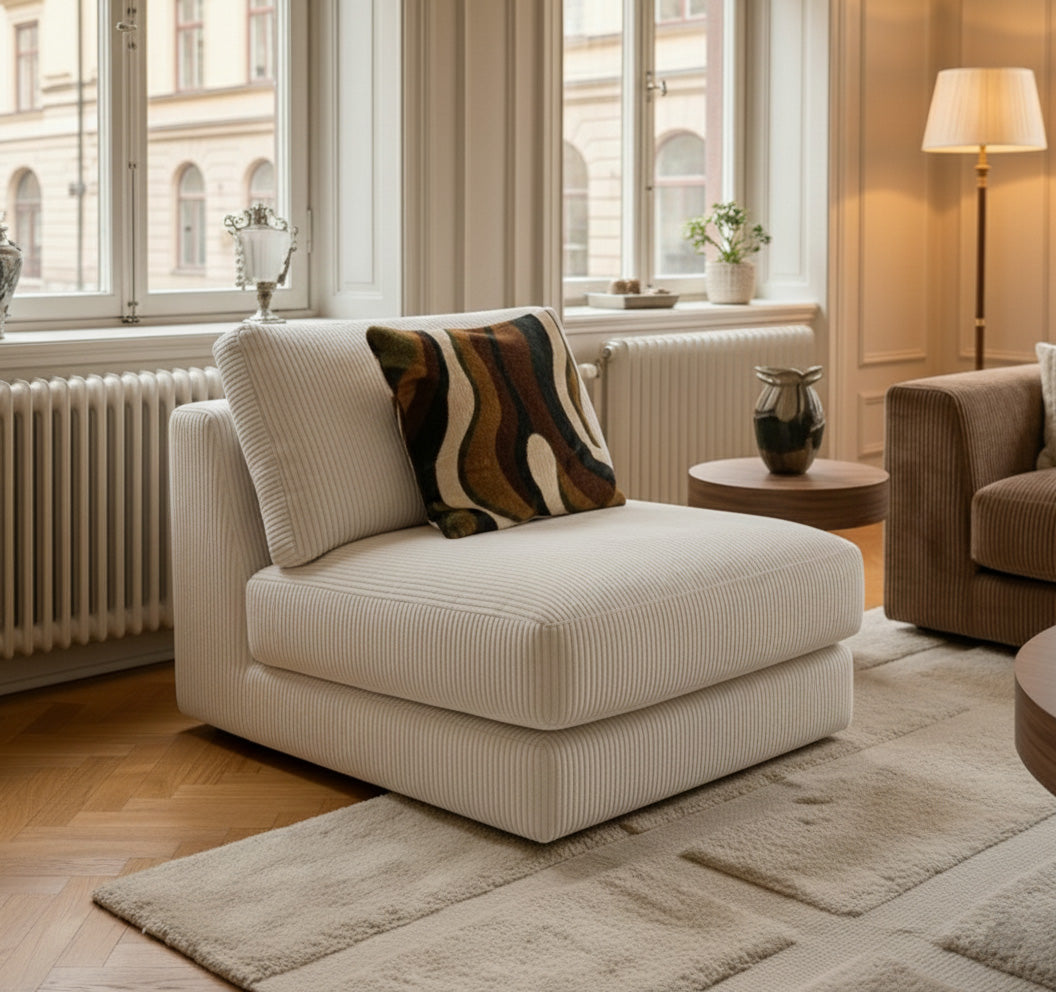 Chiara-fåtöljen från Refined Classics är en modern och otroligt bekväm loungemöbel som bjuder in till avkoppling med sitt generösa sittdjup och stilrena design. Den rymliga formen kombineras med robust konstruktion, vilket gör Chiara till det perfekta valet för dig som söker en mysig och elegant fåtölj att luta dig tillbaka i.
