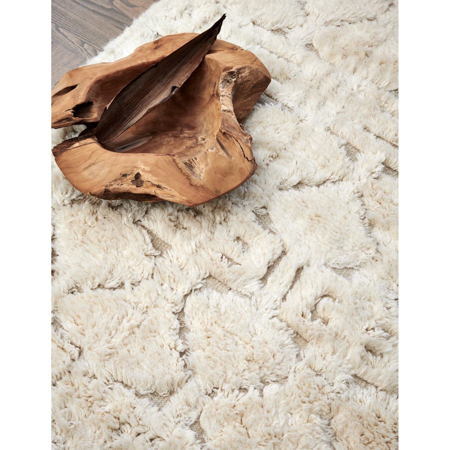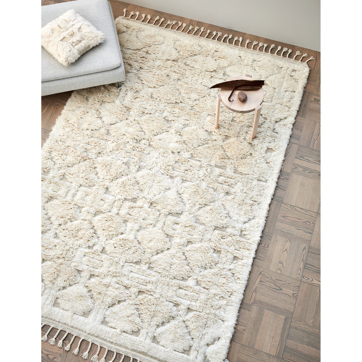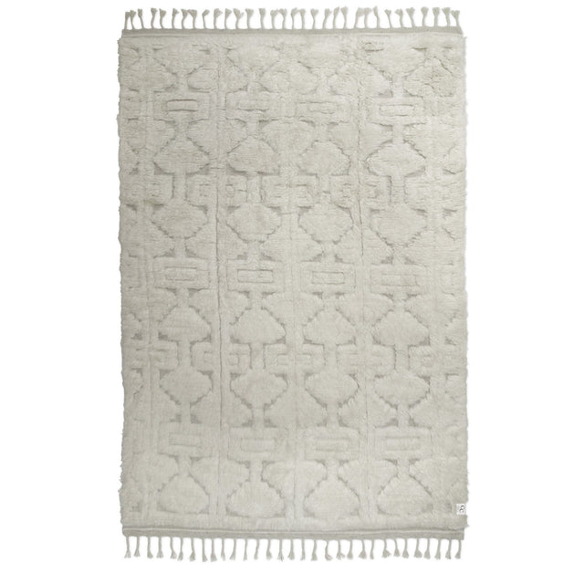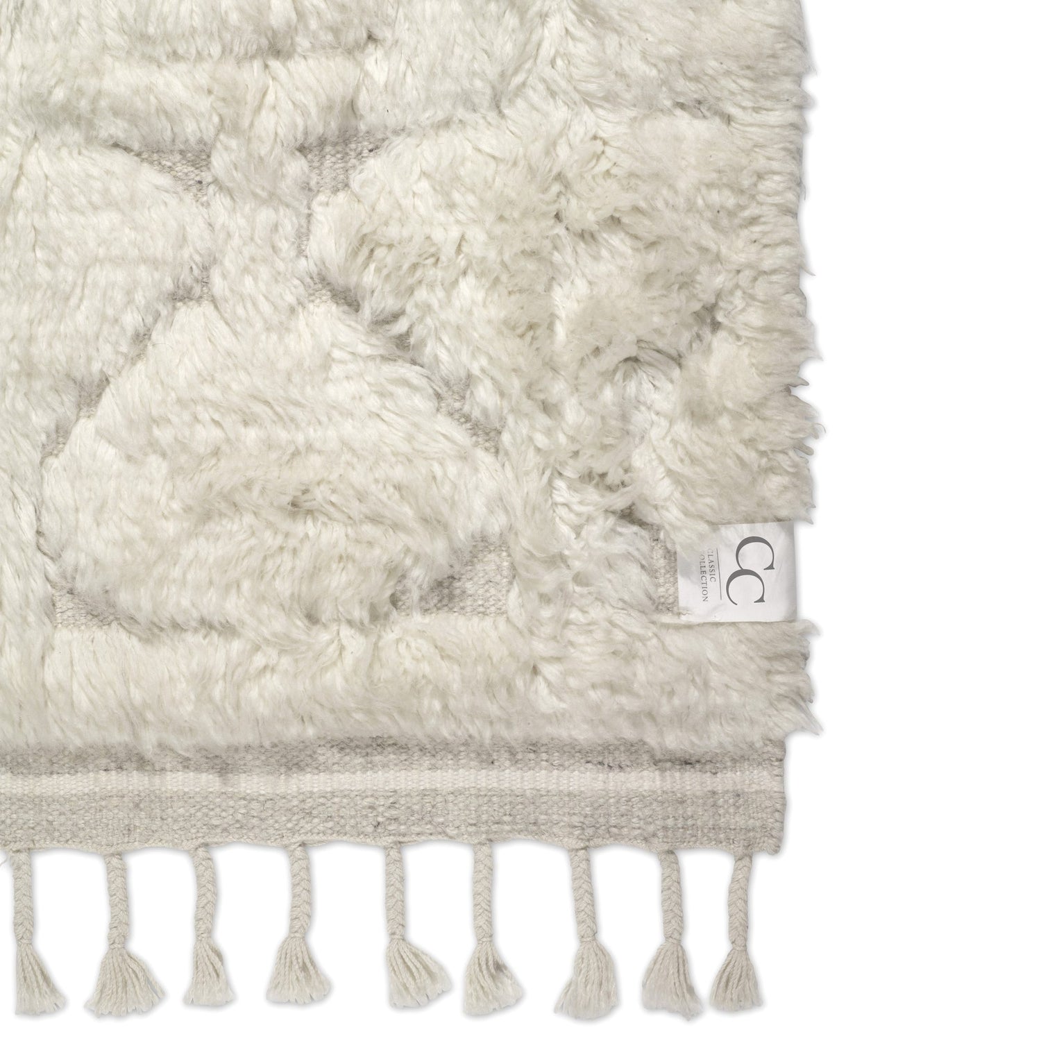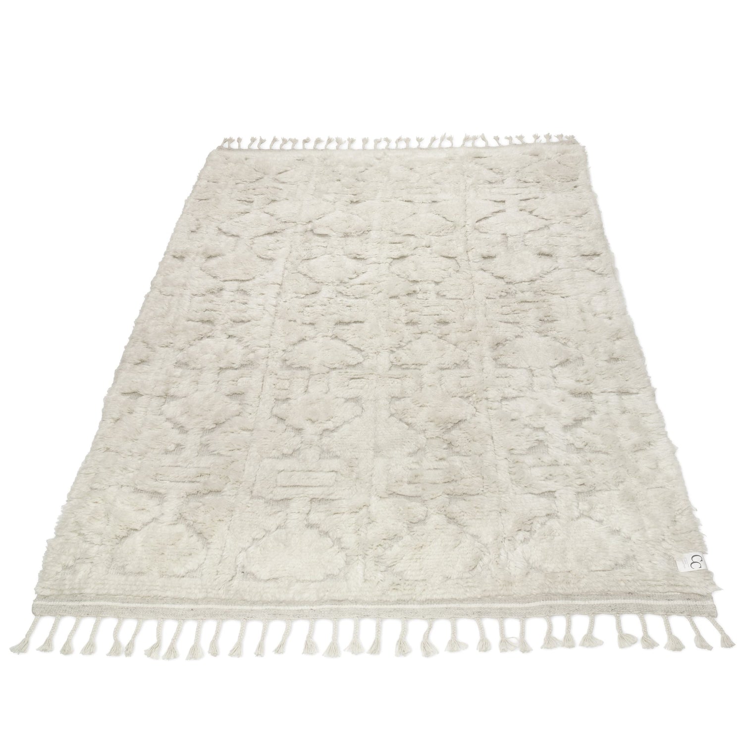 Casablanca white är en handknuten matta i finaste nyzeeländsk ull. Mönstret är inspirerat av marockanska mattor. Mattan har en lång och mjuk lugg. Casablanca - mattan är lika fin i sovrummet som vardagsrummet.