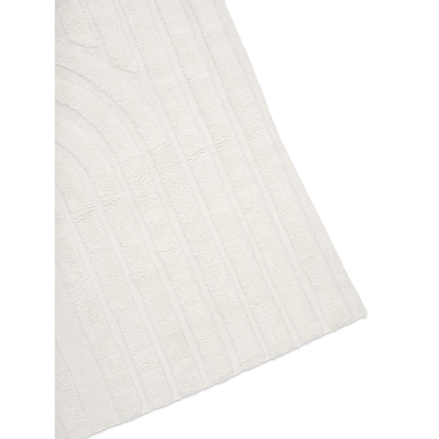 Ullmatta Curve är handvävd i mjuk ull. Mattan har ett taktilt mönster i högt och lågt där de höga partierna är i lugg och de låga i en klassisk flatvävd teknik. Mattan är rik i sin lugg vilket ger ett böljande intryck samt gör mattan mycket härlig att gå på.