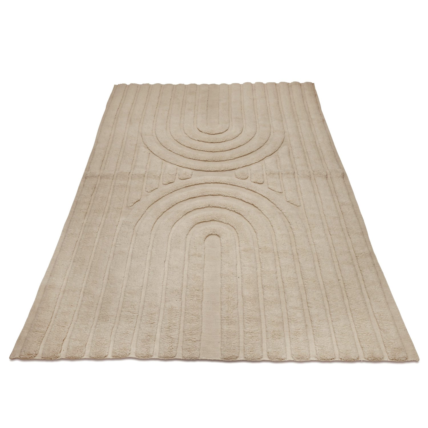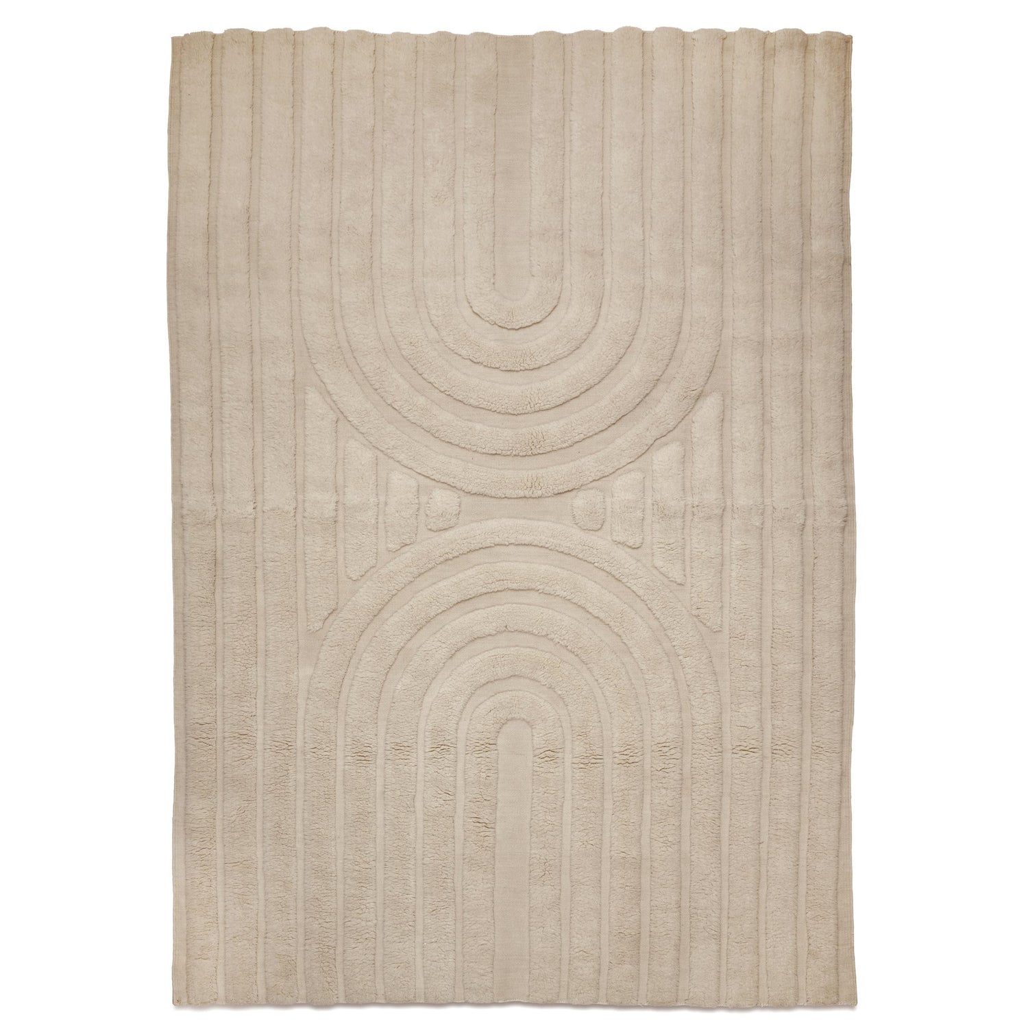 Ullmatta Curve är handvävd i mjuk ull. Mattan har ett taktilt mönster i högt och lågt där de höga partierna är i lugg och de låga i en klassisk flatvävd teknik. Mattan är rik i sin lugg vilket ger ett böljande intryck samt gör mattan mycket härlig att gå på.
