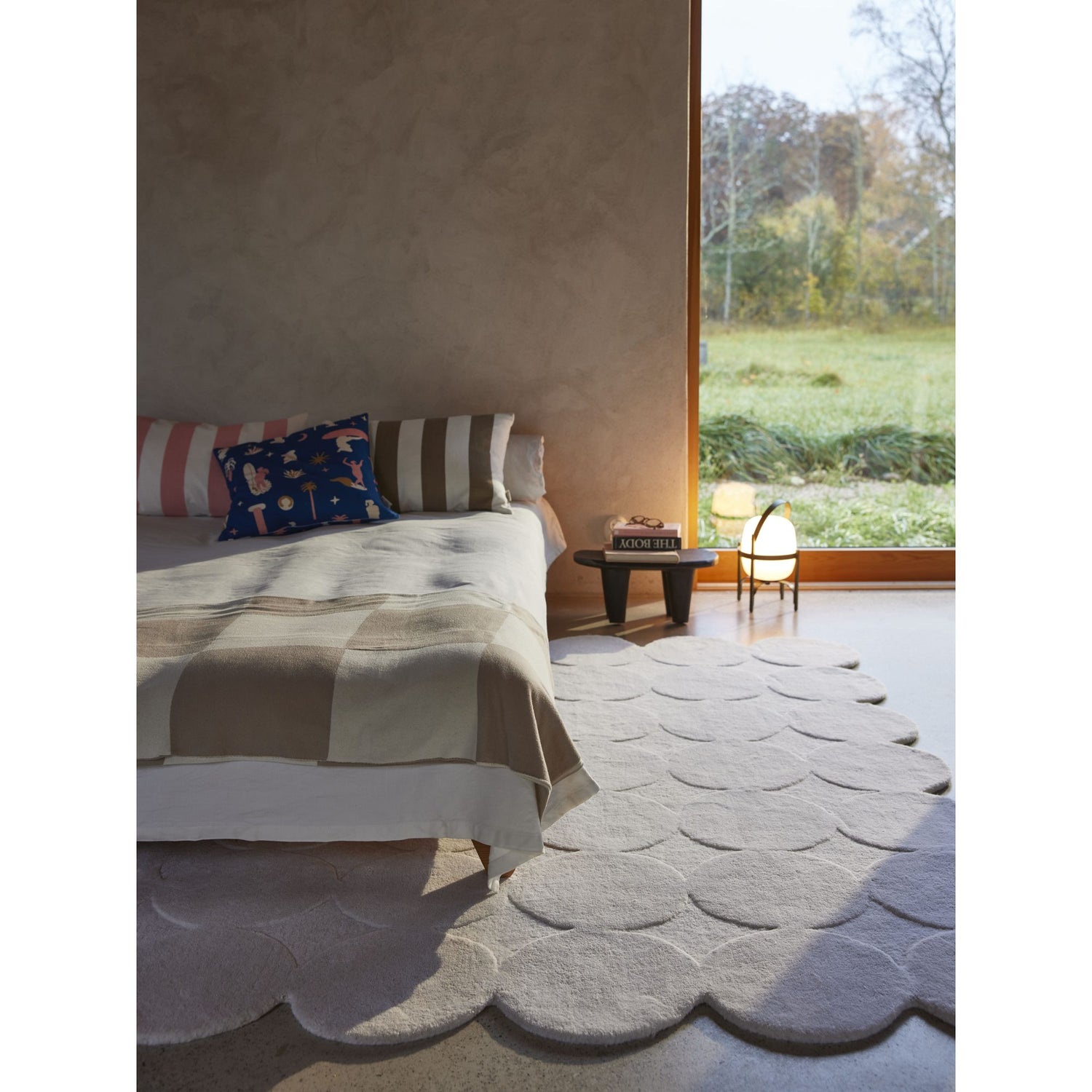 Denna matta skapar en visuell dynamik med sina höga och låga partier, där varje cirkel är försiktigt förhöjd. Cirkelmönstret sträcker sig ända ut i kanten, vilket ger en imponerande effektDots-mattan ger rummet en modern och stilfull touch.