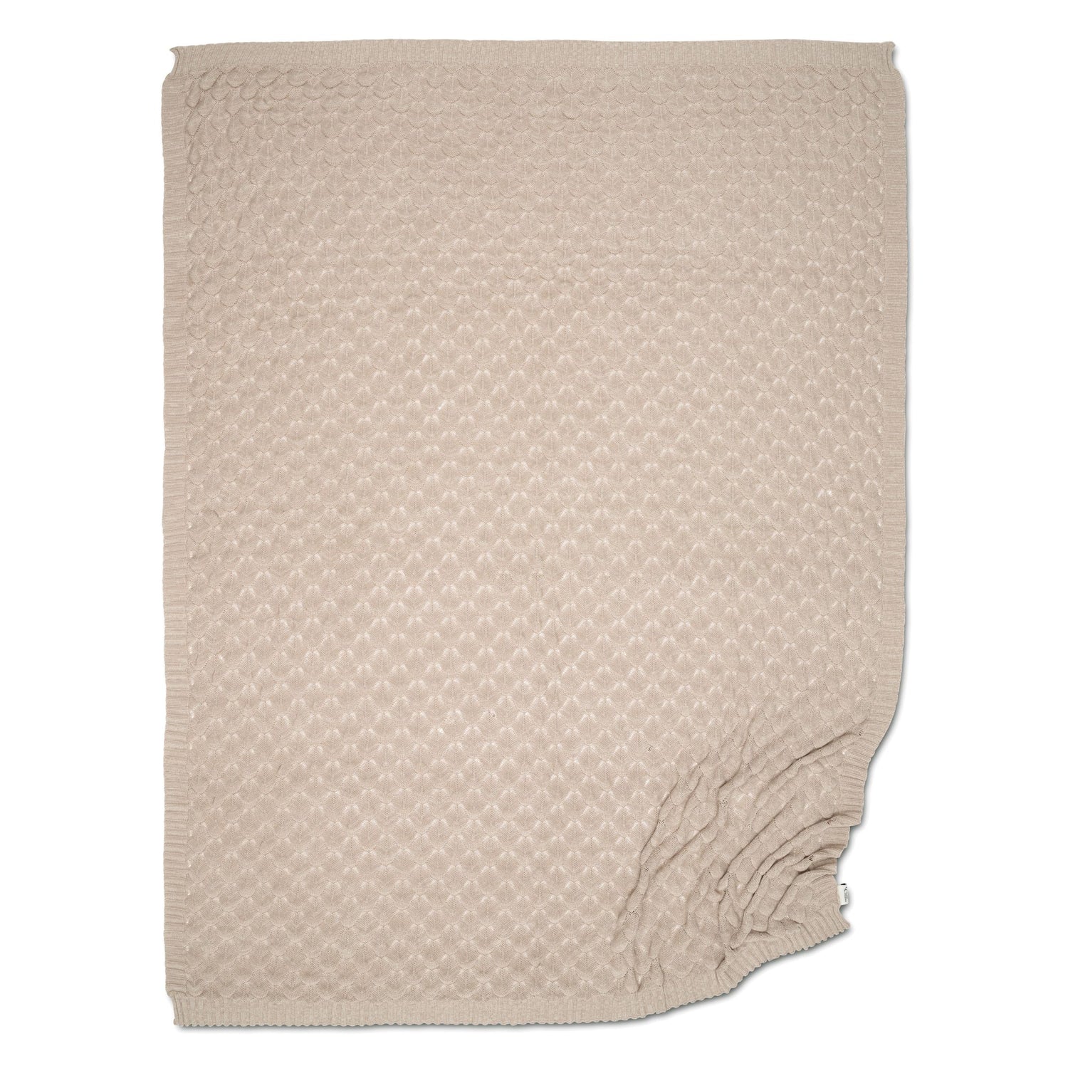 Gems är en pläd i mjuk bomull med ett dekorativt stickat mönster som påminner om små facetter. Den beige färgen är lätt att kombinera med olika inredningsstilar och skapar en varm, harmonisk känsla i rummet. Perfekt att ha i soffan, fåtöljen eller som ett extra lager i sängen.