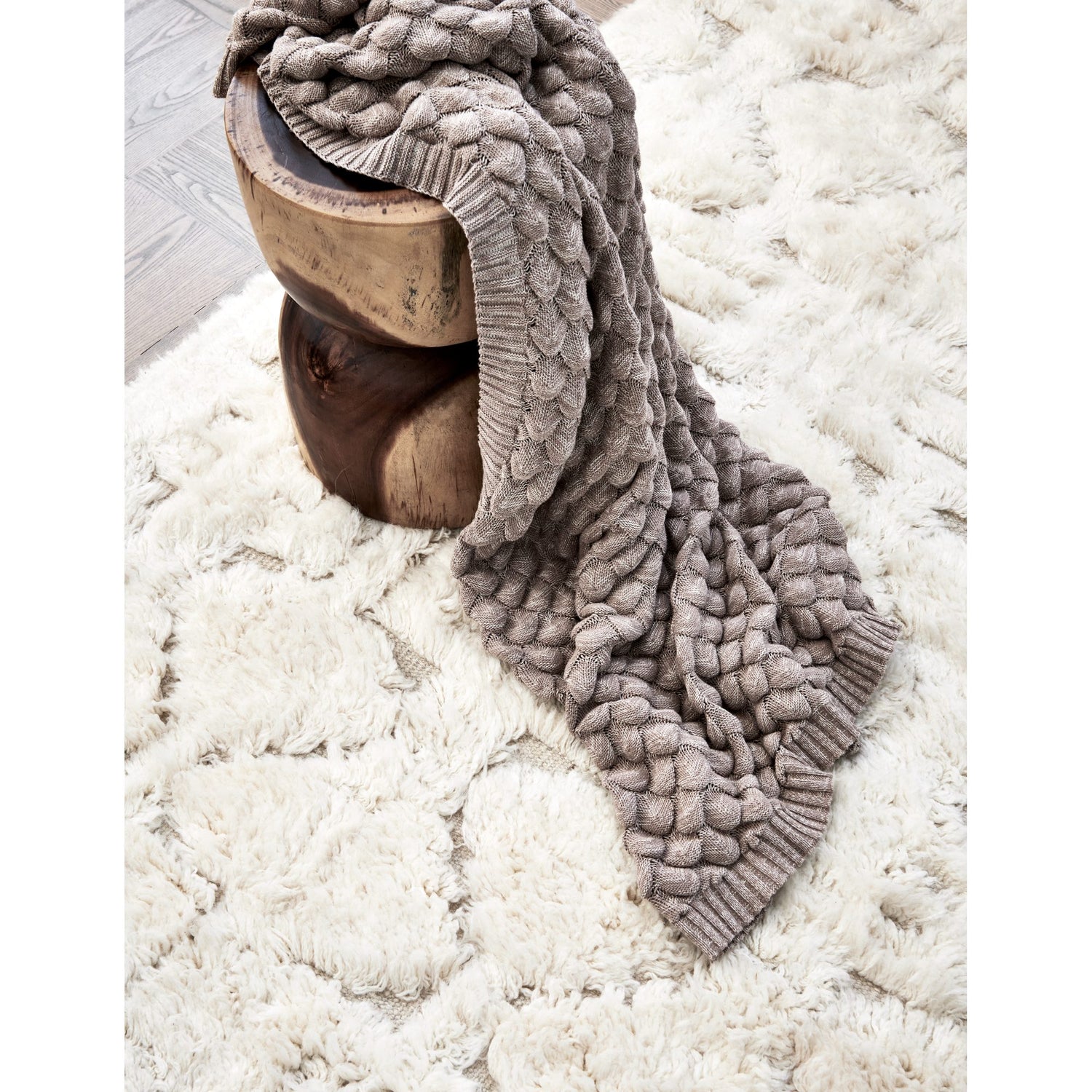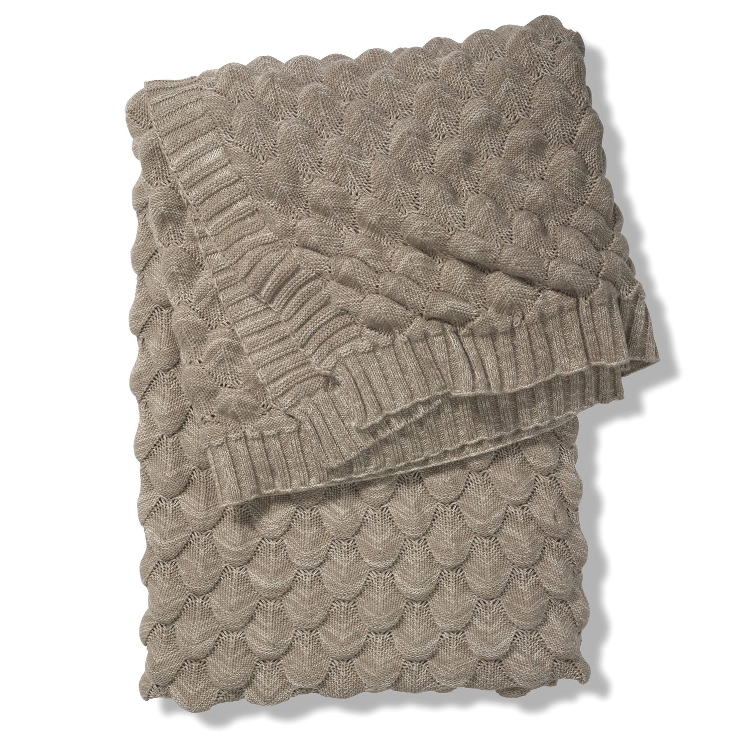 Pläd Gems Simply Taupe är stickad i mjuk bomull. Pläden är lika fin i soffan som i sängenMönstret påminner om fiskfjäll.