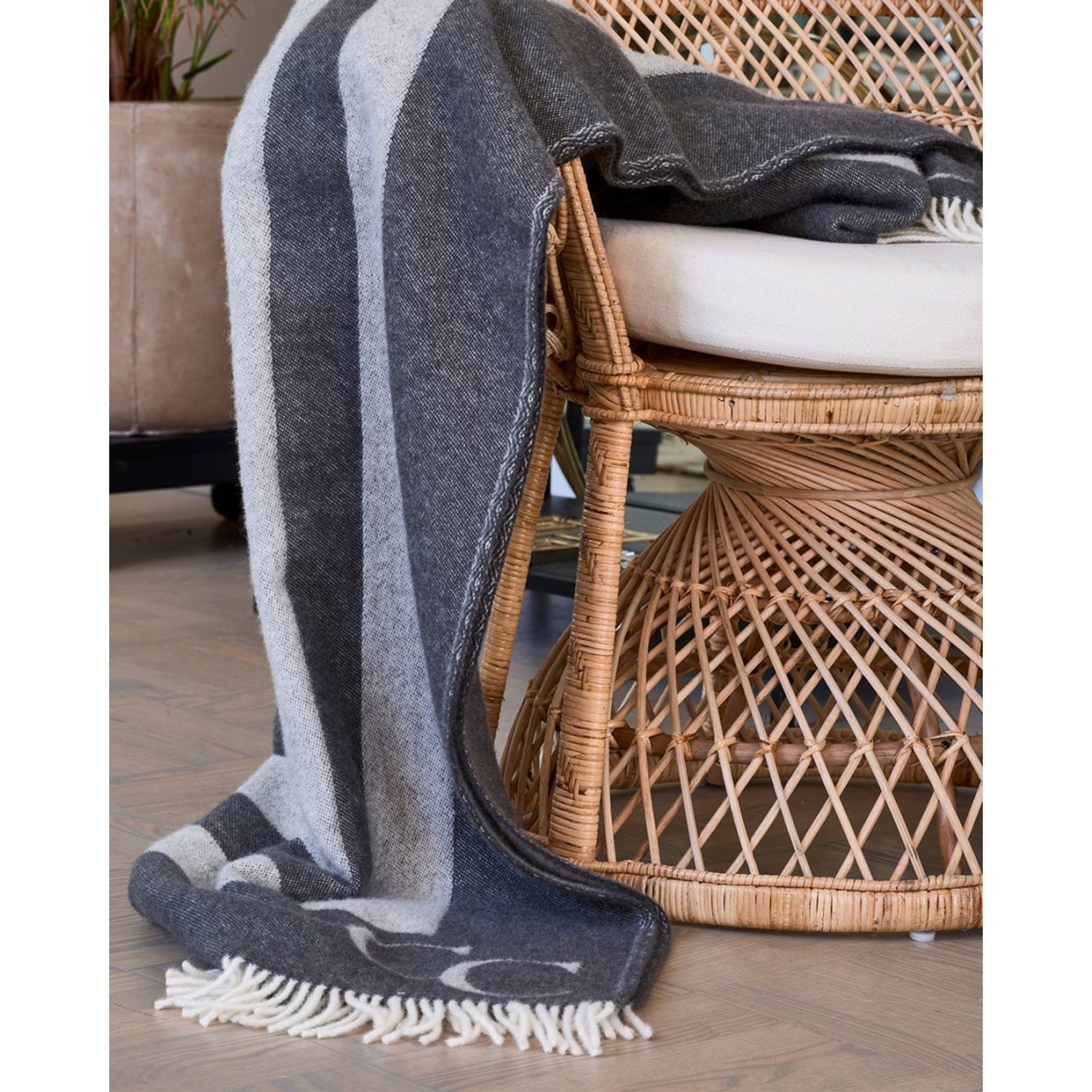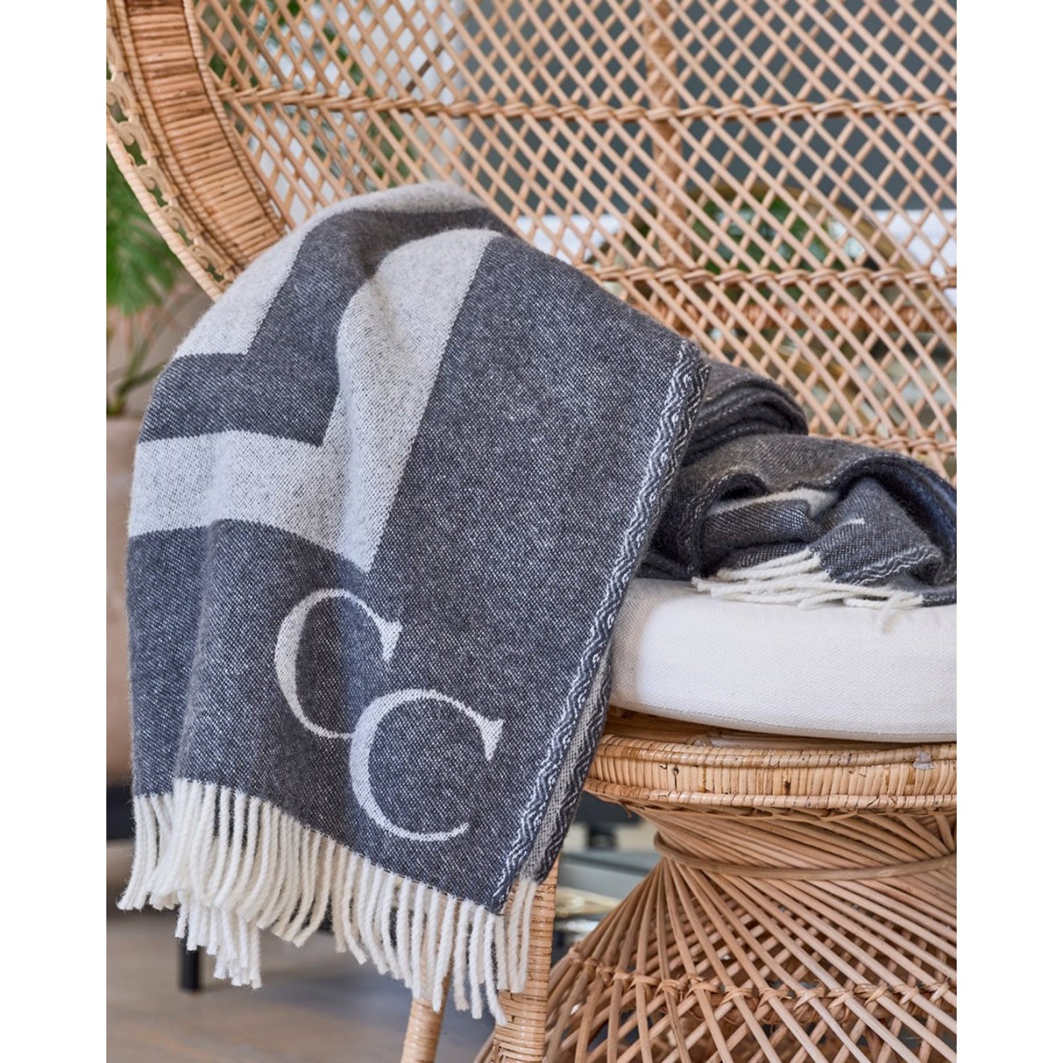Pläd Monogram Iron Gate är en lyxig pläd i nyzeeländsk ull. Den nyzeeländska ullen är mjukare än vanlig ull och därför en härlig pläd att värma sig i. Pläden är vändbar och pryds av ett monogram (Classic Collection Logo).