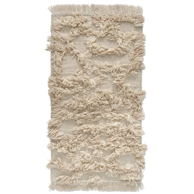 Gångmatta Rio är en handvävd luggmatta i ull. Det oregelbundna taktila mönstret ger mattan ett härligt liv. Mattan är flatvävd med ett upphöjt mönster i lugg som mjukar upp mattans intryck och gör mattan skön att gå på. Mattan luddar.