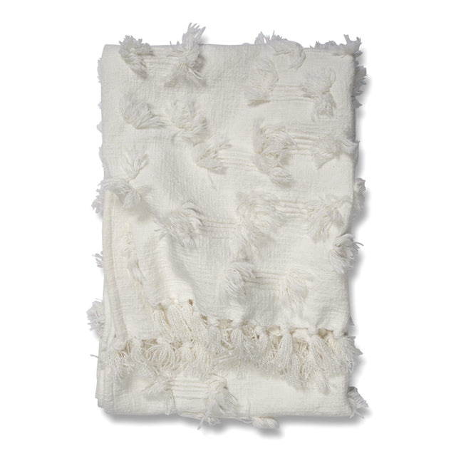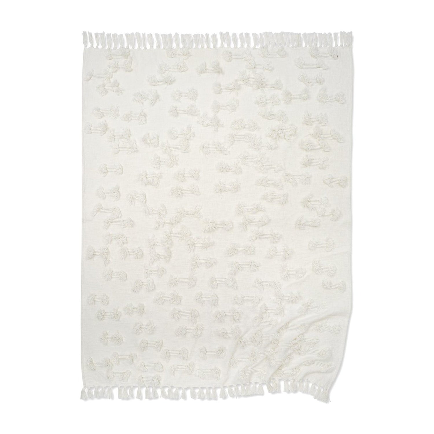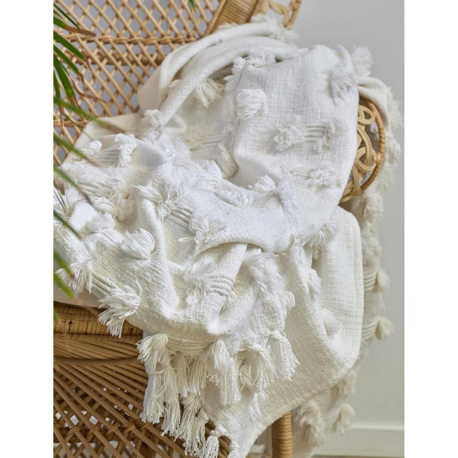 PLÄD Rope Vit är en härlig PLÄD i bomull med frans på kortsidorna. Vit botten och vita applikationer.