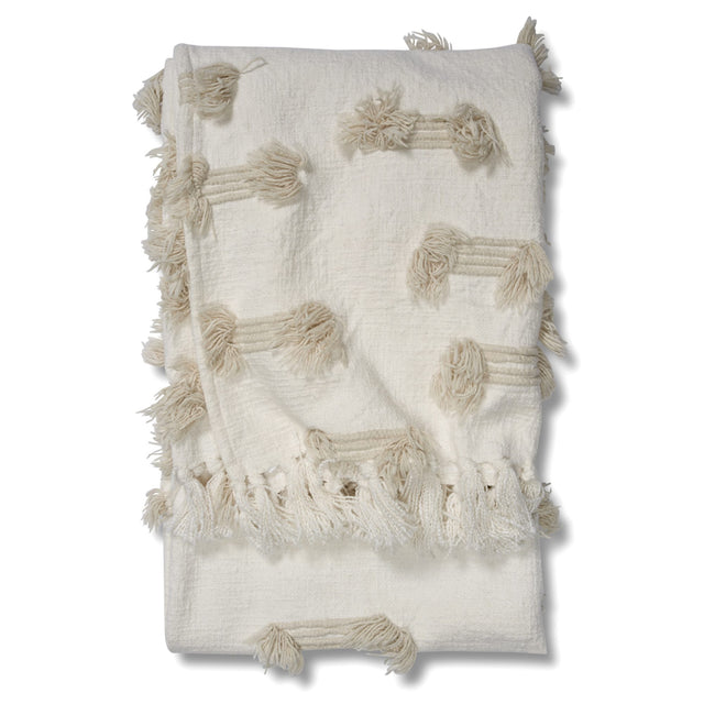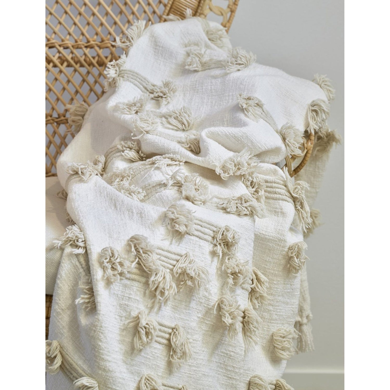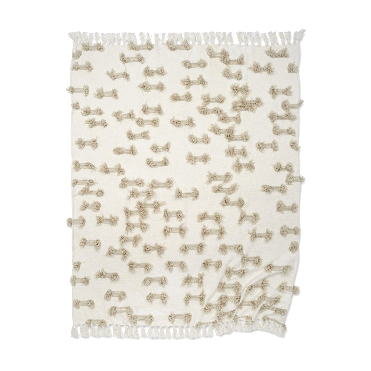 PLÄD Rope Vit/ Birch är en härlig PLÄD i bomull med frans på kortsidorna. Vit botten och applikationer i ljusbeige.