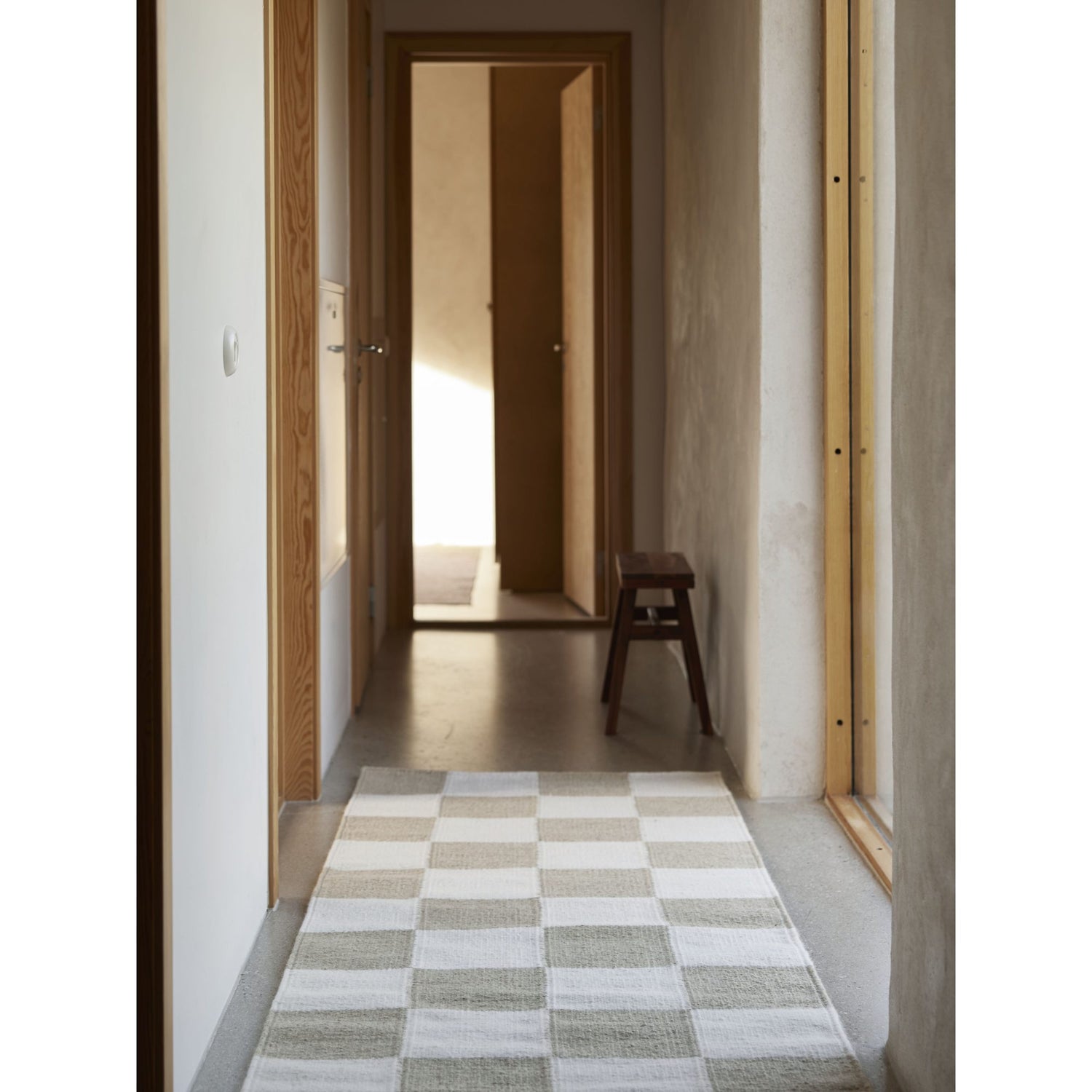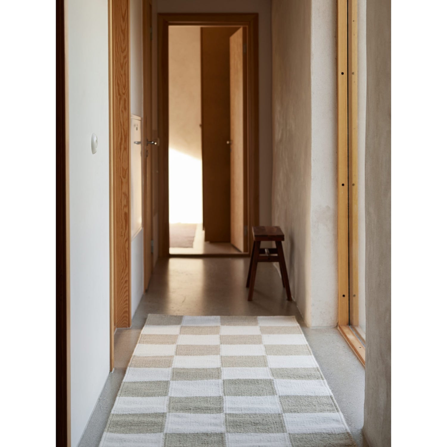 Upptäck tidlös elegans med vår handvävda gångmatta Square. Det klassiska rutmönstret ger en fräsch och stilfull touch till ditt hem. Square-mattan är tillverkad av ull, vilket gör den perfekt för kök och hall. Skapa en tidlös atmosfär i ditt hem med Squares-ullmattan och njut av både stil och kvalitet.