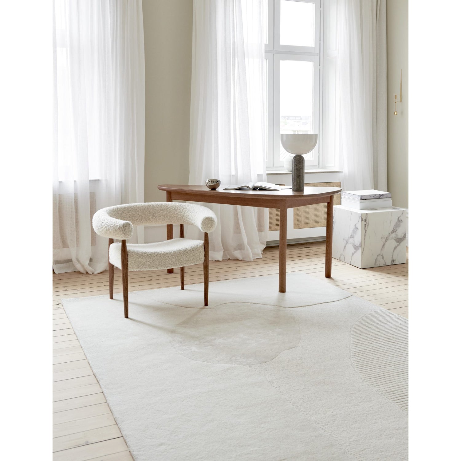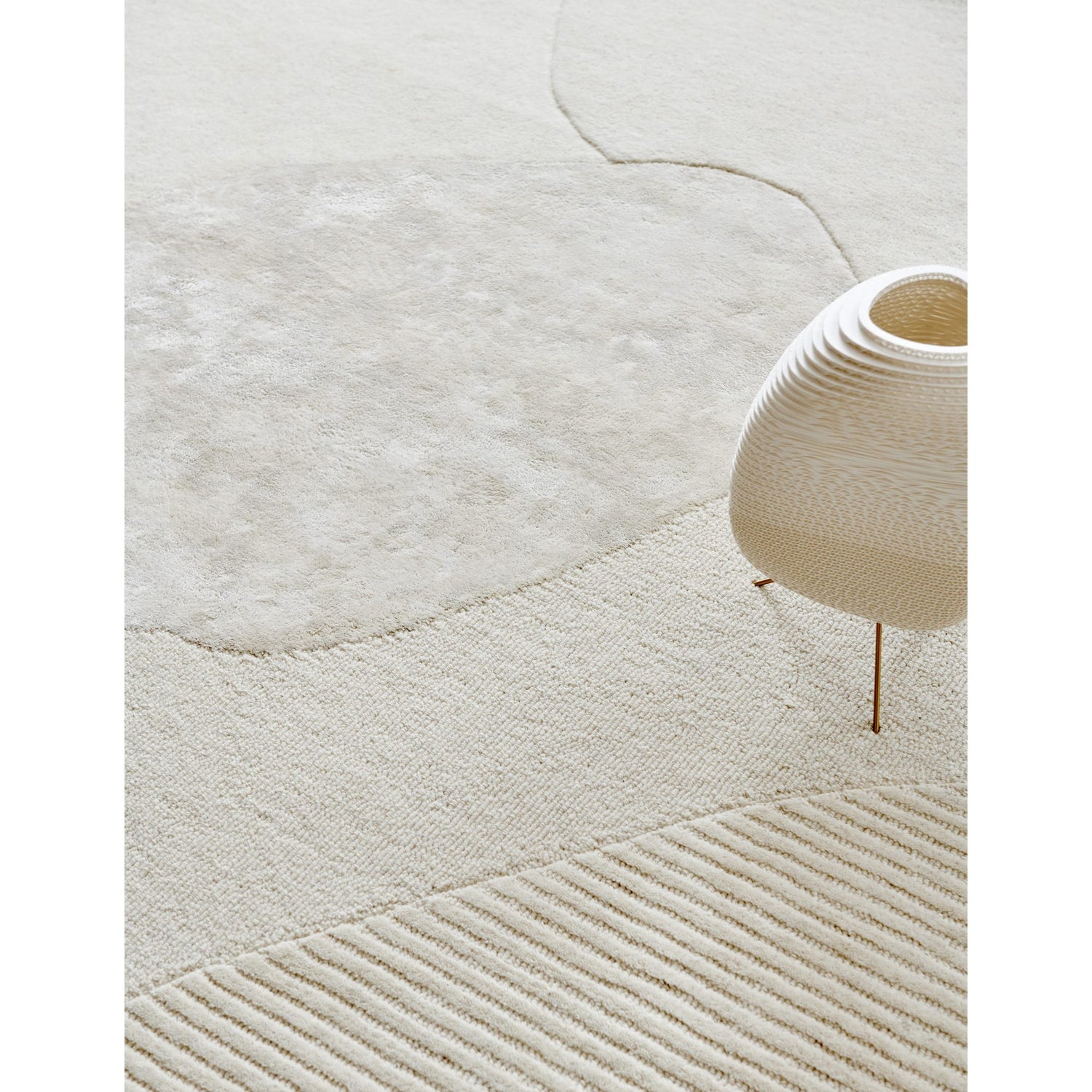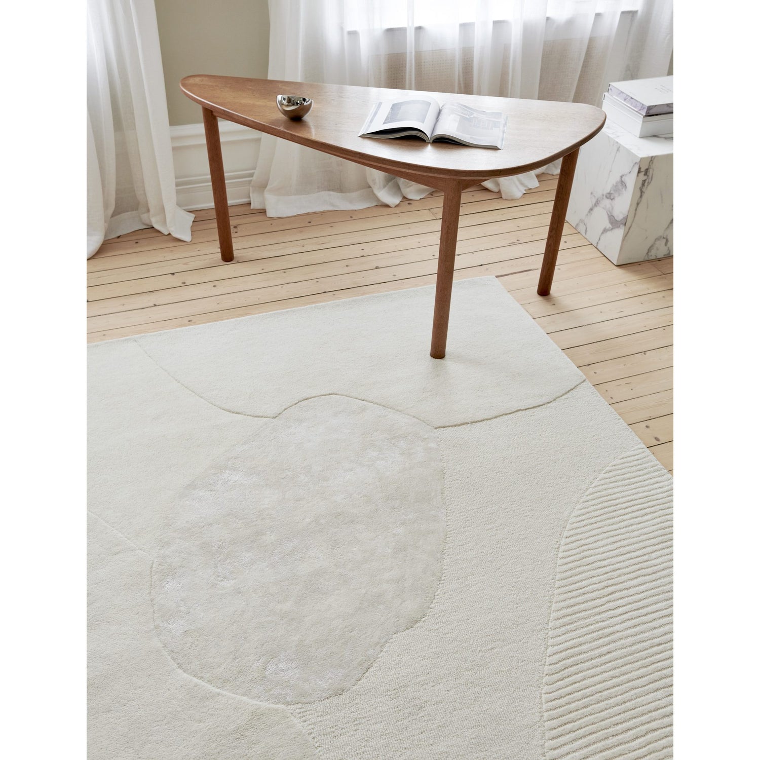Matta Topas Ivory är handtuftad i ull/ viskos och finns i flera storlekar. Mattan är till största del av ull med ett mindre, glansigt parti som är av viskos. Fälten i mattan är i olika tuftade tekniker som ger flera texturer till mattan. Där fälten möts är de klippta för hand som en inramning till de olika texturerna.