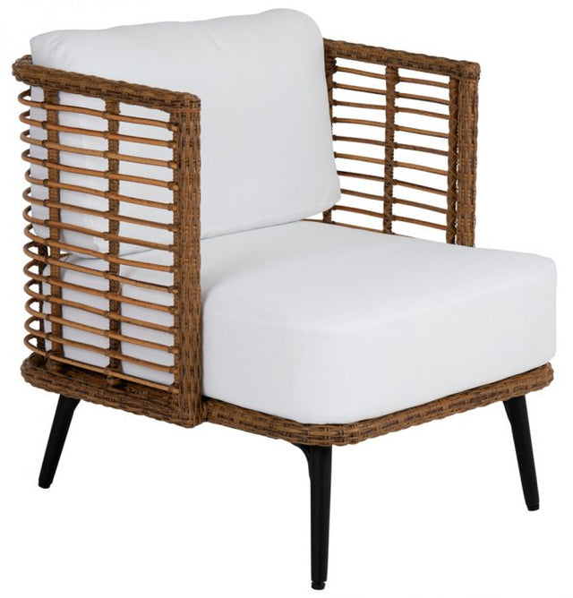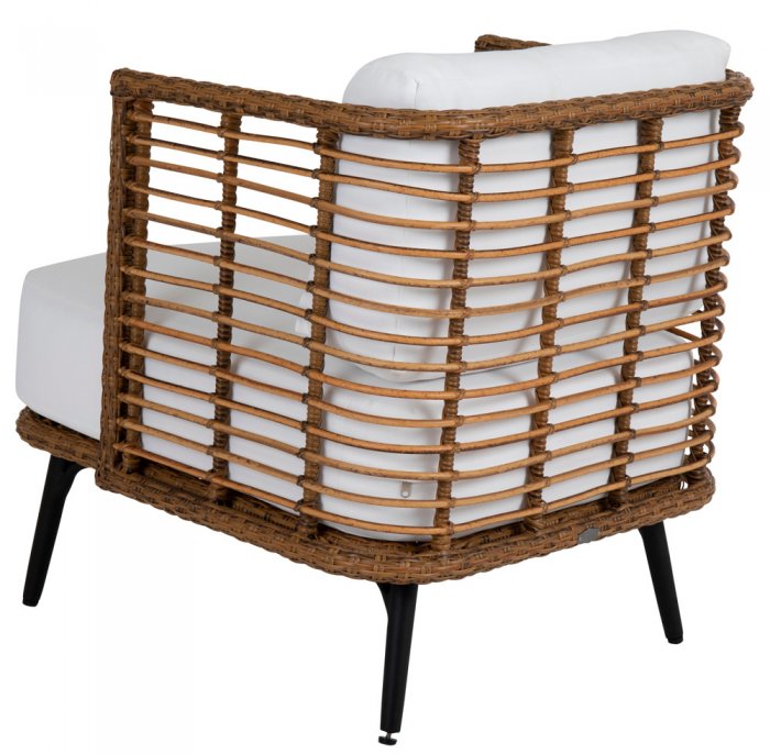 Covelo är en härlig och lyxig loungefåtölj i konstrotting från Brafab. Covelo har en modern design med sina grova och naturtrogna konstrotting i kombination med nätta ben och härliga vita dynor. En möbel som sätter sin prägel på en uteplatsen och blir den självklara mittpunkten för allt socialt. Dynorna är klädda med ett slitstarkt olefintyg i en snygg offwhite finish som är tvättbart i maskin.