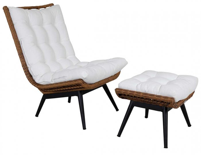 Slappna av med stil. Covelo loungefåtölj blir en snygg och skön del av varje uteplats. Konstrottingen i naturfärg passar perfekt ihop med den mjuka vita dynan i olefintyg. Dynan är tvättbar i maskin. Den lugna lutningen ger utmärkt sittkomfort.
