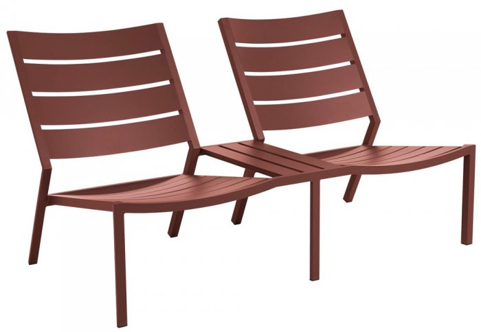 Delia är en modern tolkning av den klassiska Du & Jag soffan. Den är tillverkad i mattlackad aluminium vilket gör soffan helt underhållsfri och klarar av fukt och vatten helt utmärkt. Välj mellan olika färger på stommen.