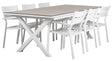 I detta set ingår Hillmond matbord i vitt med 6st Delia karmstolar.