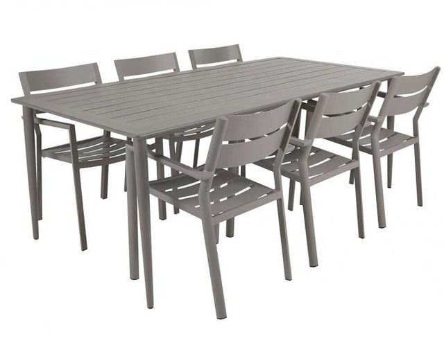I denna matgrupp ingår ett Nimes bord samt 6st Delia karmstolar i khaki.