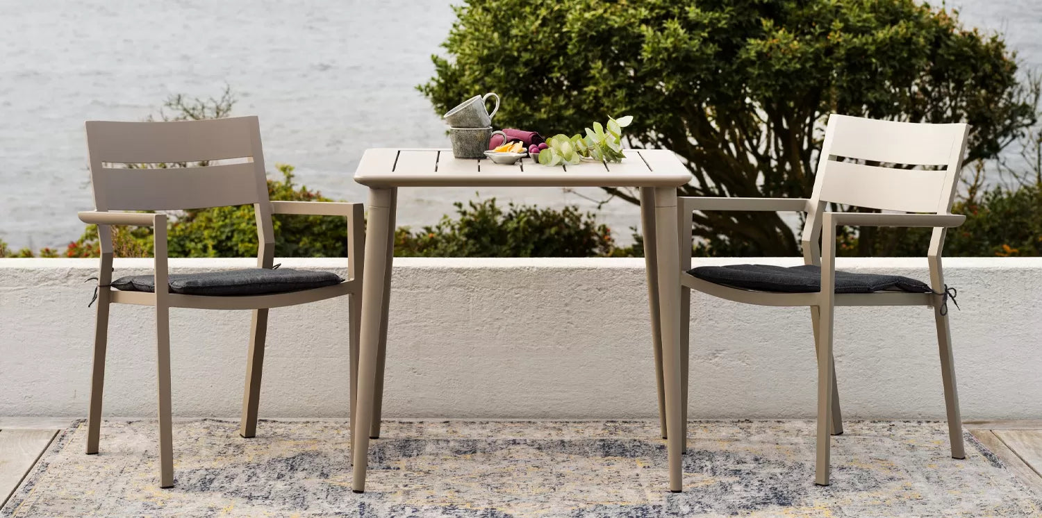 Nimes är ett elegant matbord i pulverlackad lackad aluminium från Brafab. Nimes har en elegant ribbad toppskiva med nätta och snygga konade ben. Bordet är helt underhållsfritt och kan stå ute hela sommarsäsongen. Skydda gärna under vinter.
