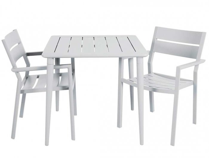 I denna matgrupp ingår ett Nimes bord samt 2st Delia karmstolar i vit.
