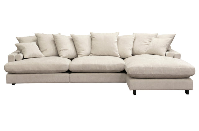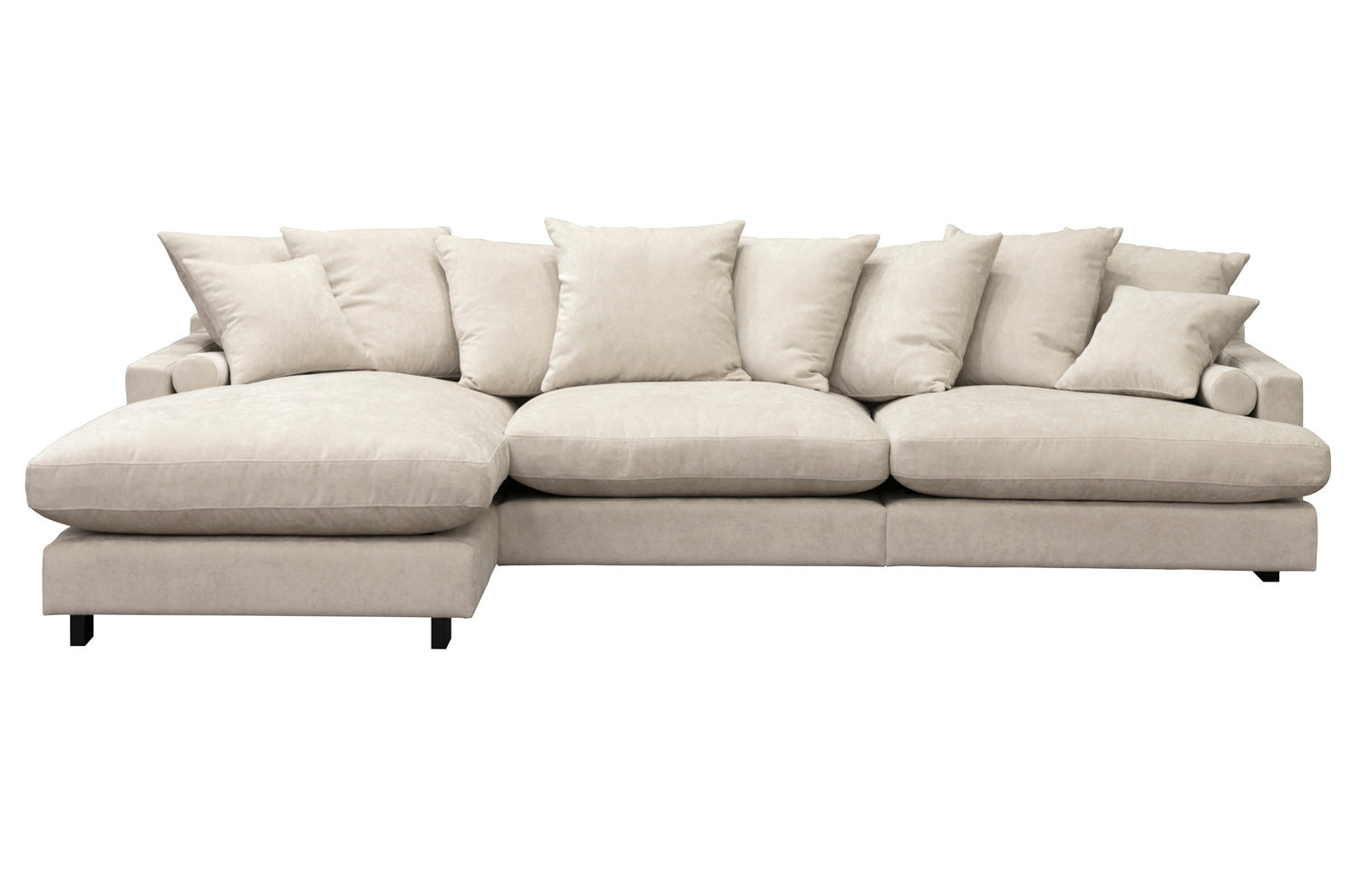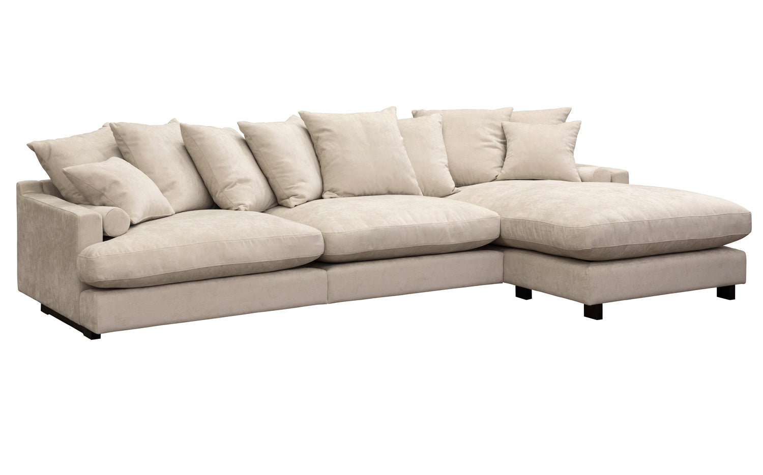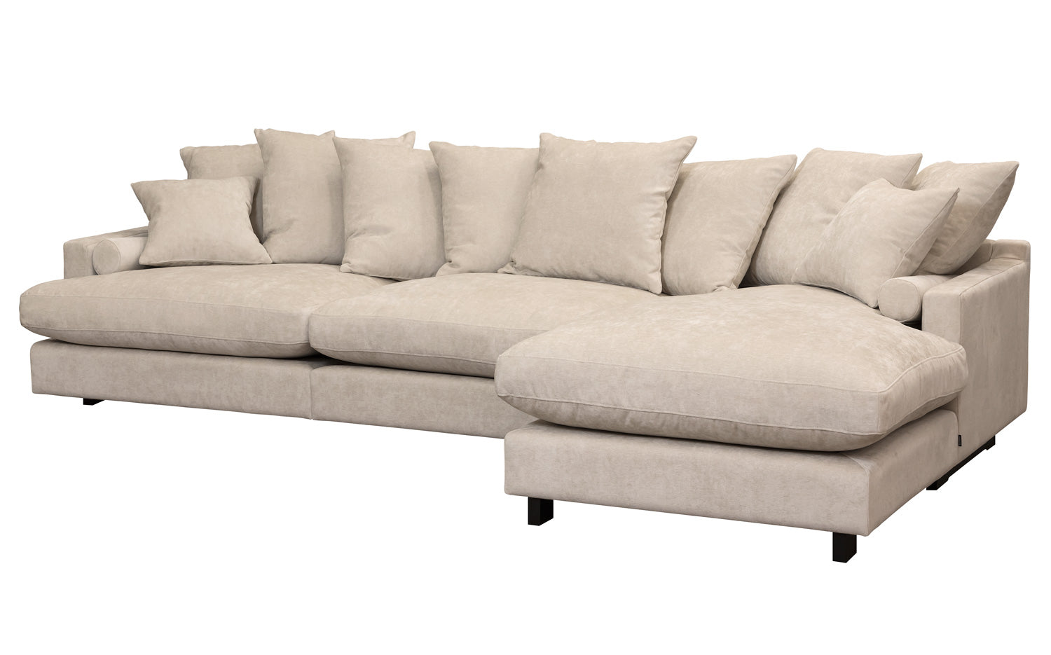 Sittdynorna består av högelastiskt, formskuret kallskum som är svept med silikoniserad fiber och fjäder. Ryggdynorna är fyllda med silikoniserad fiber och fjäder. Dynorna är dessutom vändbara på soffor med tygklädsel. Modellen har fast klädsel och kommer med avtagbara, tvättbara fodral (gäller ej läder). Du kan välja ben i flera klassiska träsorter.