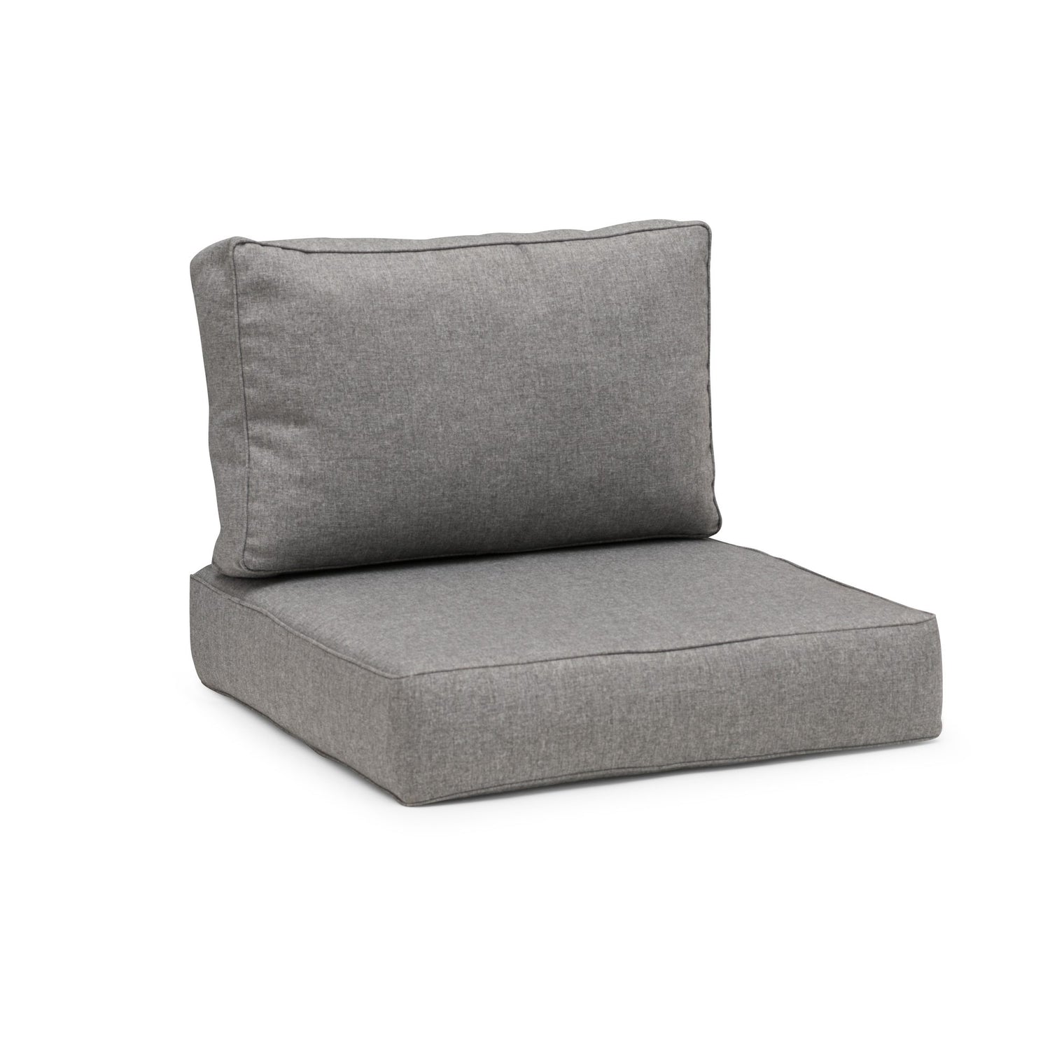 Grå melange dynset i polyester till Stoltö loungefåtölj. Stoppning av polyester och fiberfill. Ryggdyna 62x40x13 cm, Sitsdyna 64x68x12 cm.